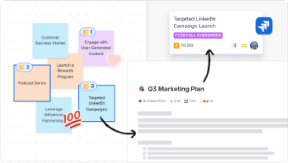 Beat the blank poge with Al-powered creation and ready-to-use templotes. Droft PRDs, social briefs, annual plans, and more in seconds.