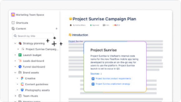 Get up-to-date on all the work happening around you with Al-powered page and comment summaries, oudio briefings, and integrations.
